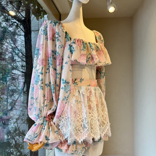O top Alice combina delicadeza e charme em cada detalhe. Ele possui acabamentos na cor cream, trazendo suavidade ao visual, enquanto a parte do busto em tecido floral adiciona um toque romântico e feminino. As alças finas completam a peça, tornando-a perfeita para composições casuais.